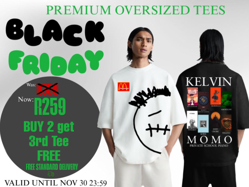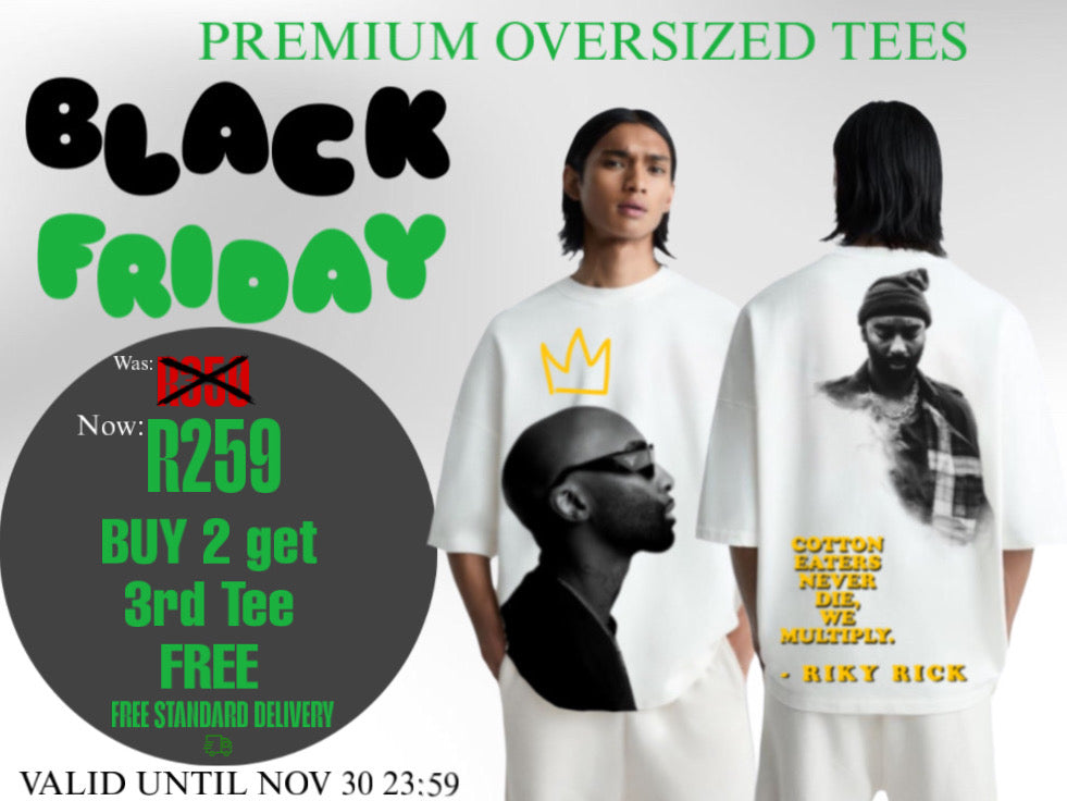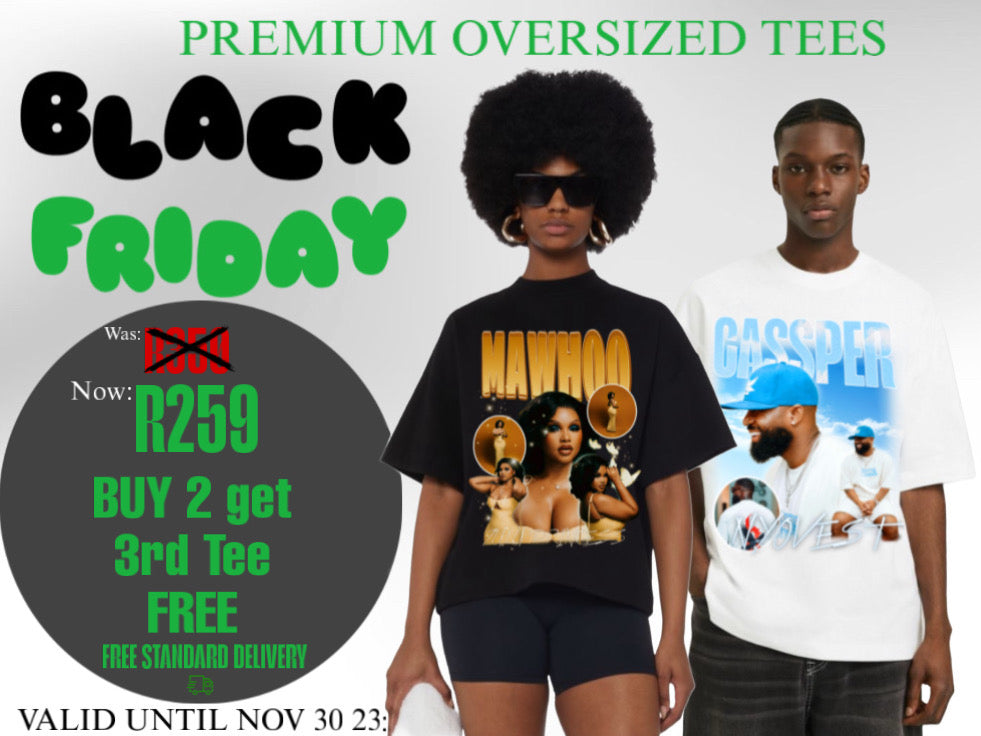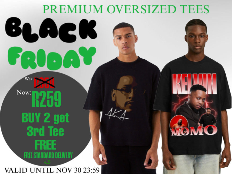 BLACK FRIDAY SALE R259 EACH!!! BUY 2 TEES! And get a 3rd...