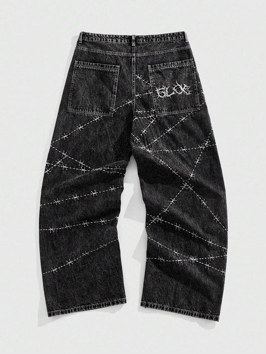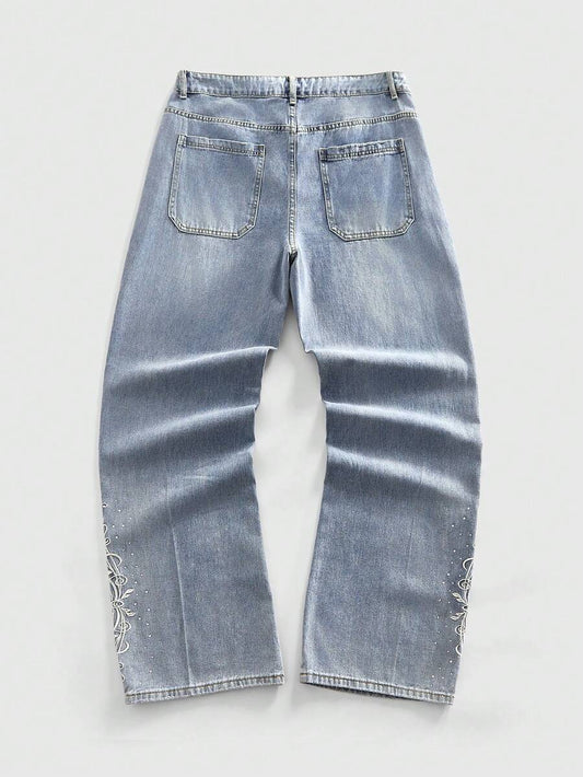 27% OFF 7 Year Anniversary SaleMen's Floral Embroidered Wide-Leg Casual Jeans