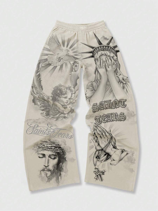 20% OFF 7 Year Anniversary SaleMen's Religious Character Wide-Leg Sweatpants