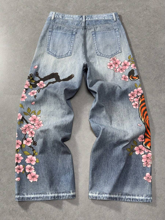 22% OFF 7 Year Anniversary SaleFloral Tiger Print Wide Leg Jeans