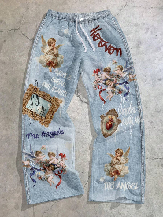 28% OFF 7 Year Anniversary SaleAngel Flame Print Straight Leg Sweatpants