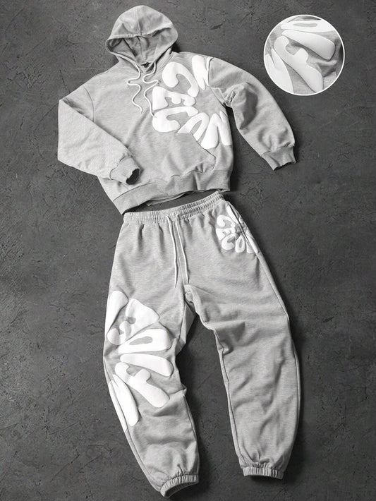Men’s Letter Print Hoodie And Sweatpants Two Piece Set