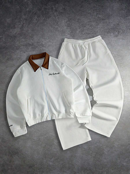 Men's 2pc Zip-Up Jacket And Drawstring Waist Long Pants Set