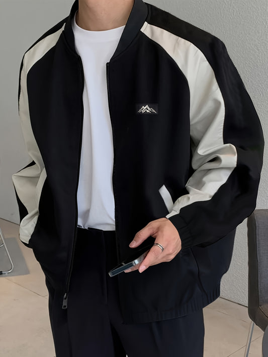 Color Block Jacket with Baseball Collar