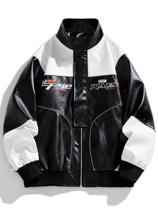 Men's Rhinestone Embellished Figure Print Zip Front Drawstring Hoodie Sweatshirt