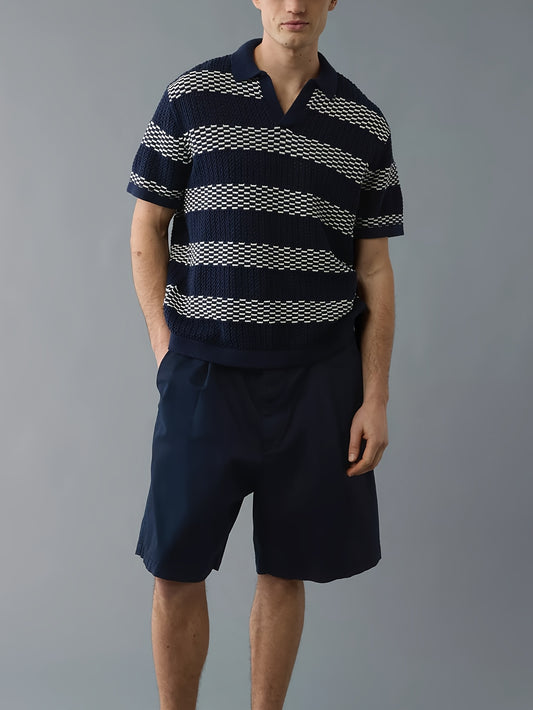 Men's Striped Polo Collar Long Sleeve T-Shirt