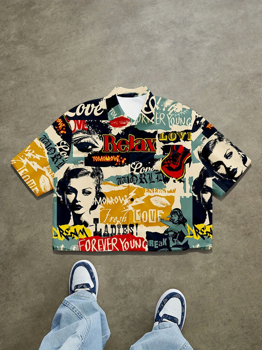 Men'S Vintage Portrait Print Short Sleeve Shirt
