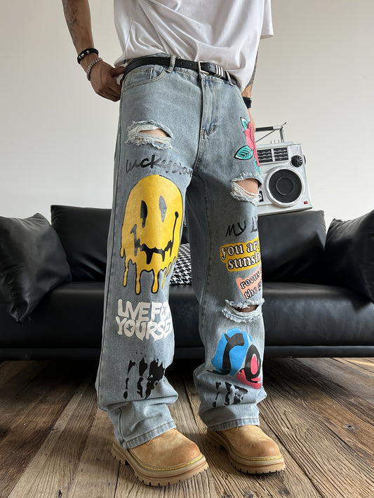 SalePrinted Ripped Jeans