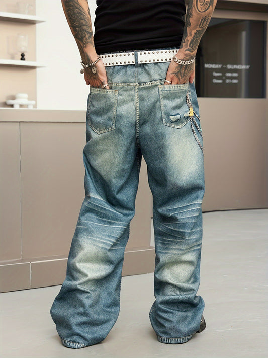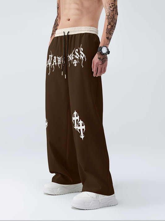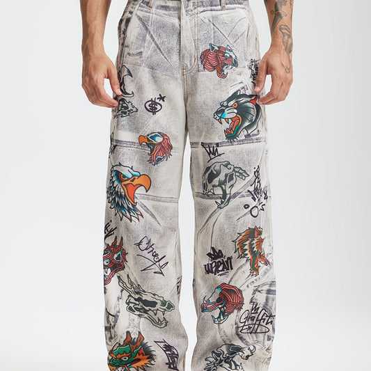 Printed Loose Fit Straight Leg Faux Denim