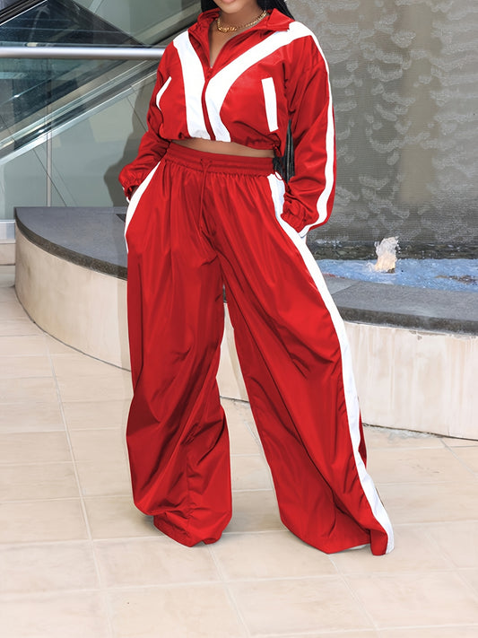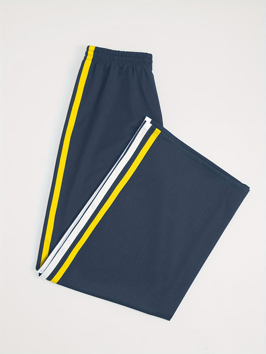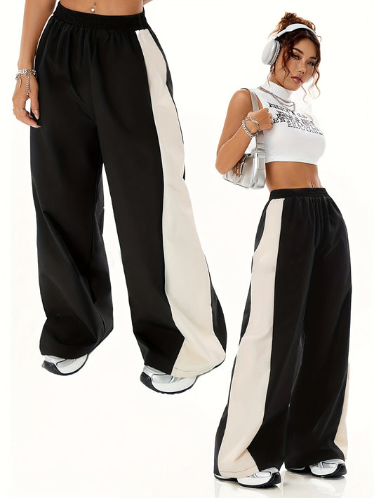 Women'S Casual Color Block Striped Loose-Fit Straight-Leg Pants e