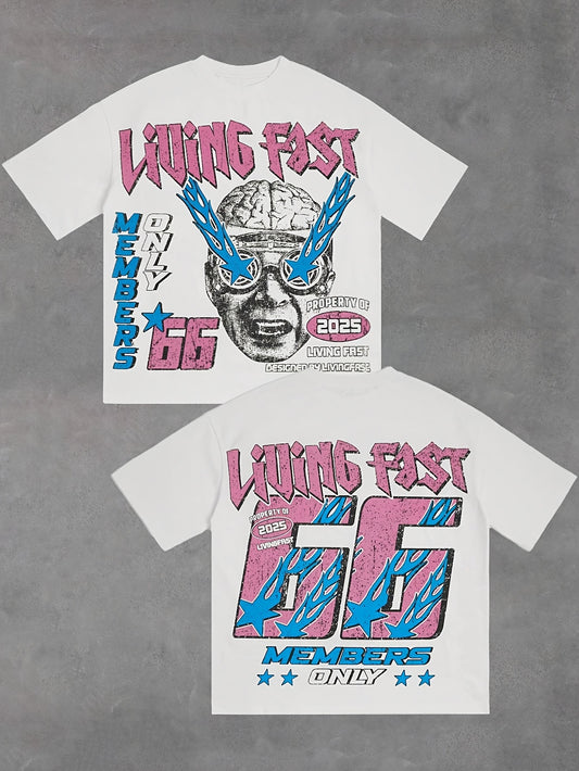 Retro Speedy Life Digital Print Cartoon Portrait Fashion Short Sleeve T-shirt