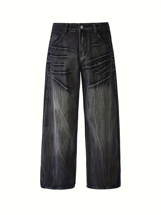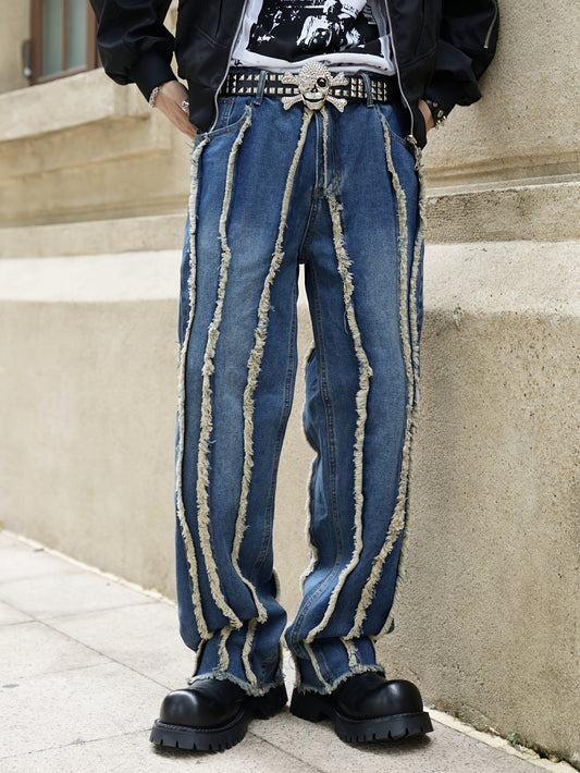 Men's Street Style Raw Hem Loose-Fit Jeans