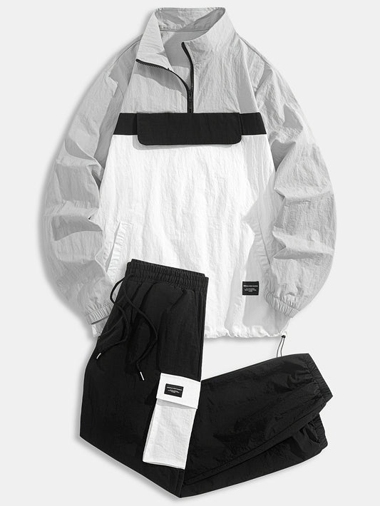 Men'S Sporty Color-Block Zip-Up Hoodie & Jogger Pants Set