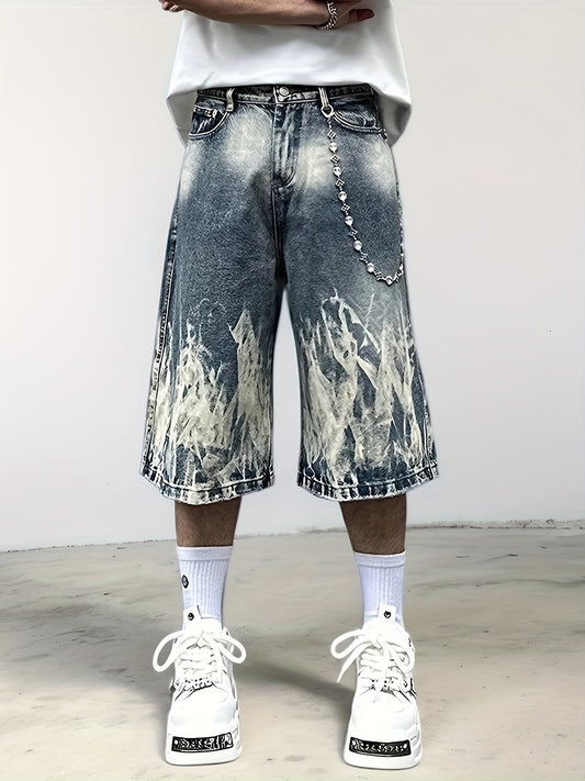 Men'S Punk-Inspired Loose Fit Denim Shorts