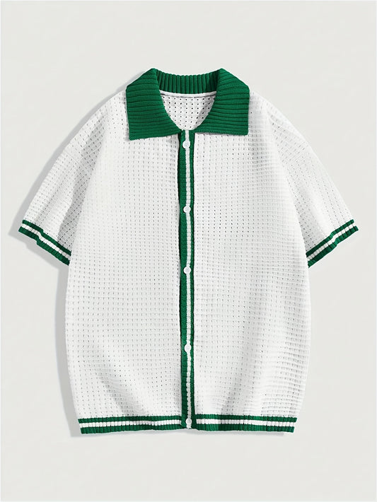 Men's Summer Slim Fit Contrast Collar Short Sleeve Knit Sweater