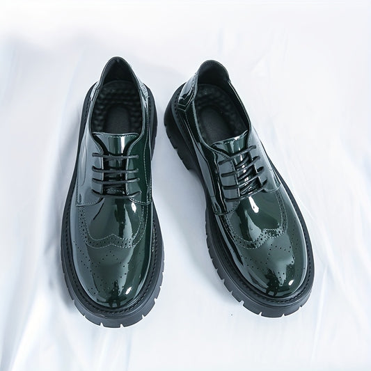 Men's Stylish Black & Green Wingtip Oxford Shoes
