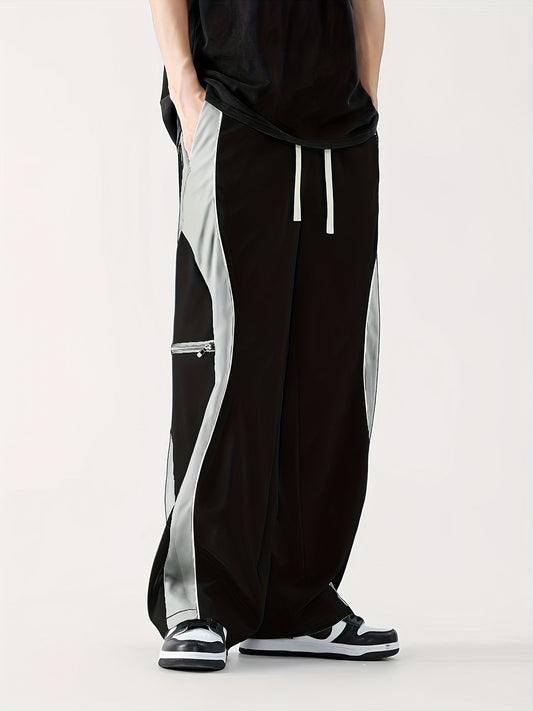 Women'S Casual Color Block Striped Loose-Fit Straight-Leg Pants e