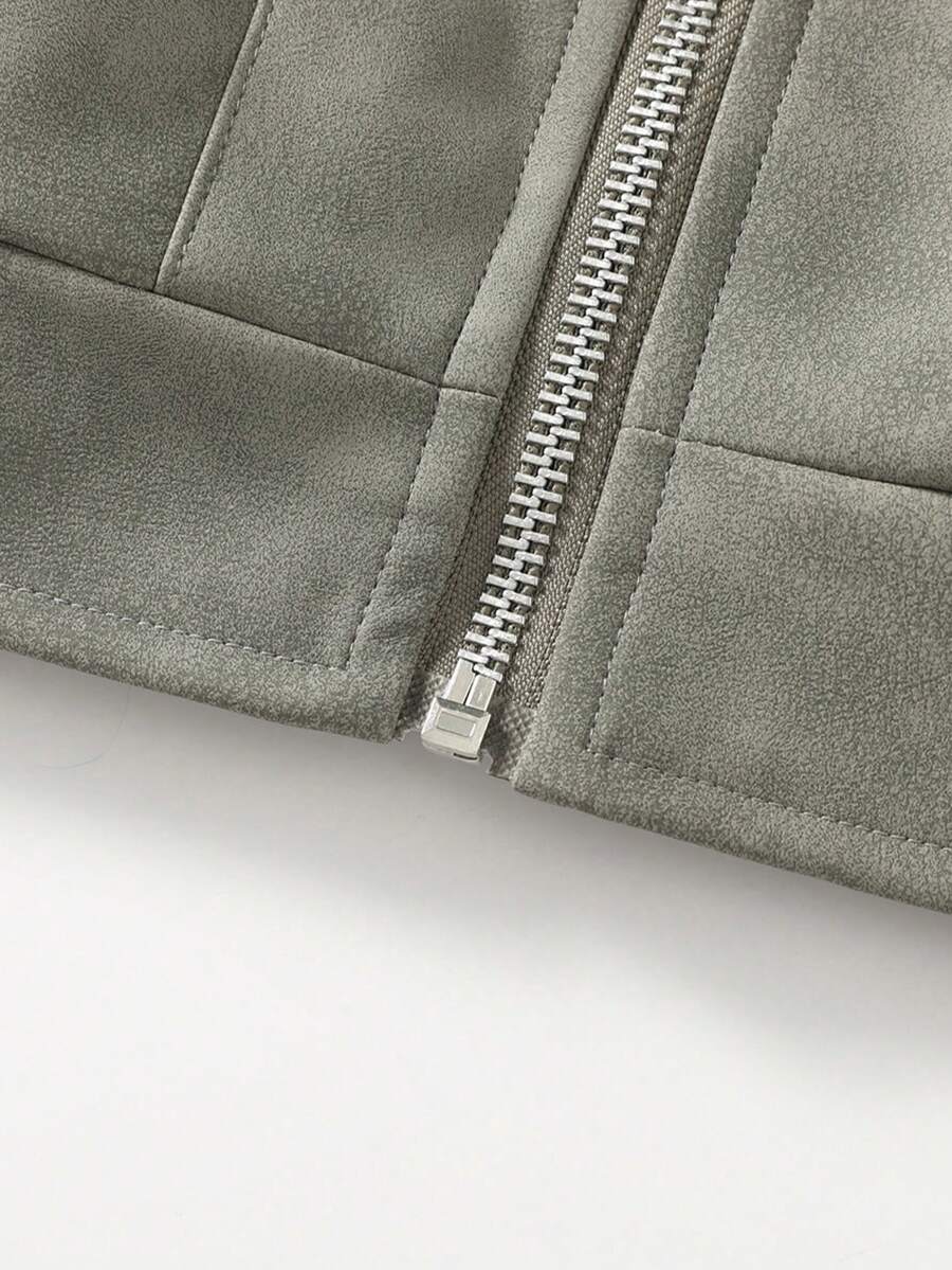Men's Vintage Worn Full Zipper Lapel Leather Jacket