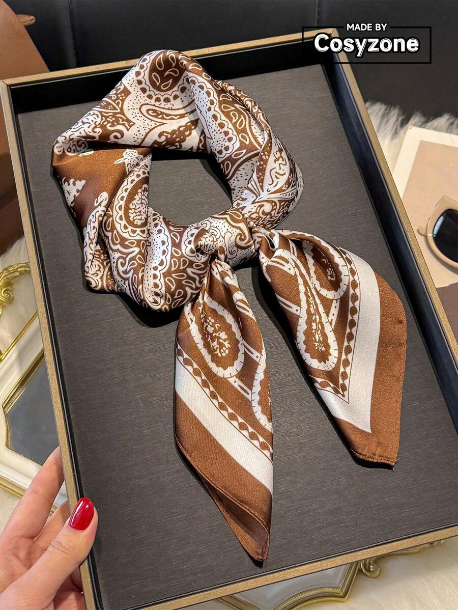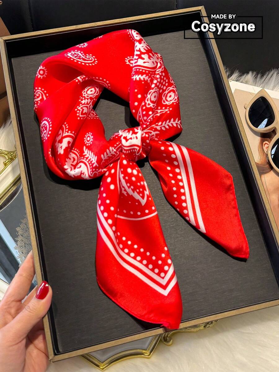 1pc Paisley Printed 70cm Faux Silk Square Scarf/Bandana