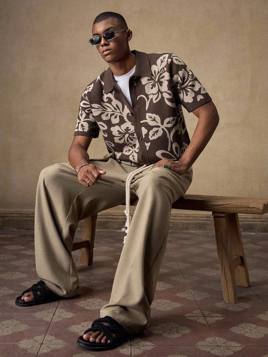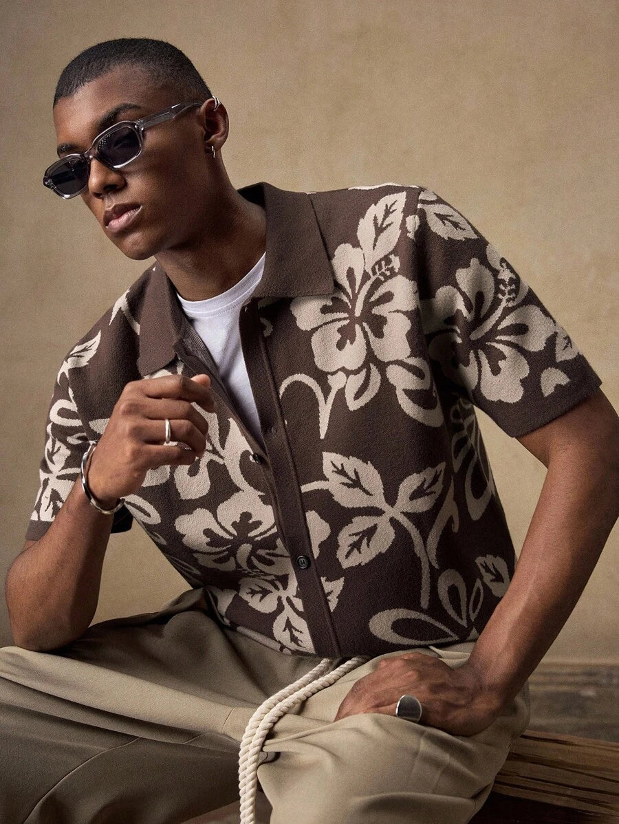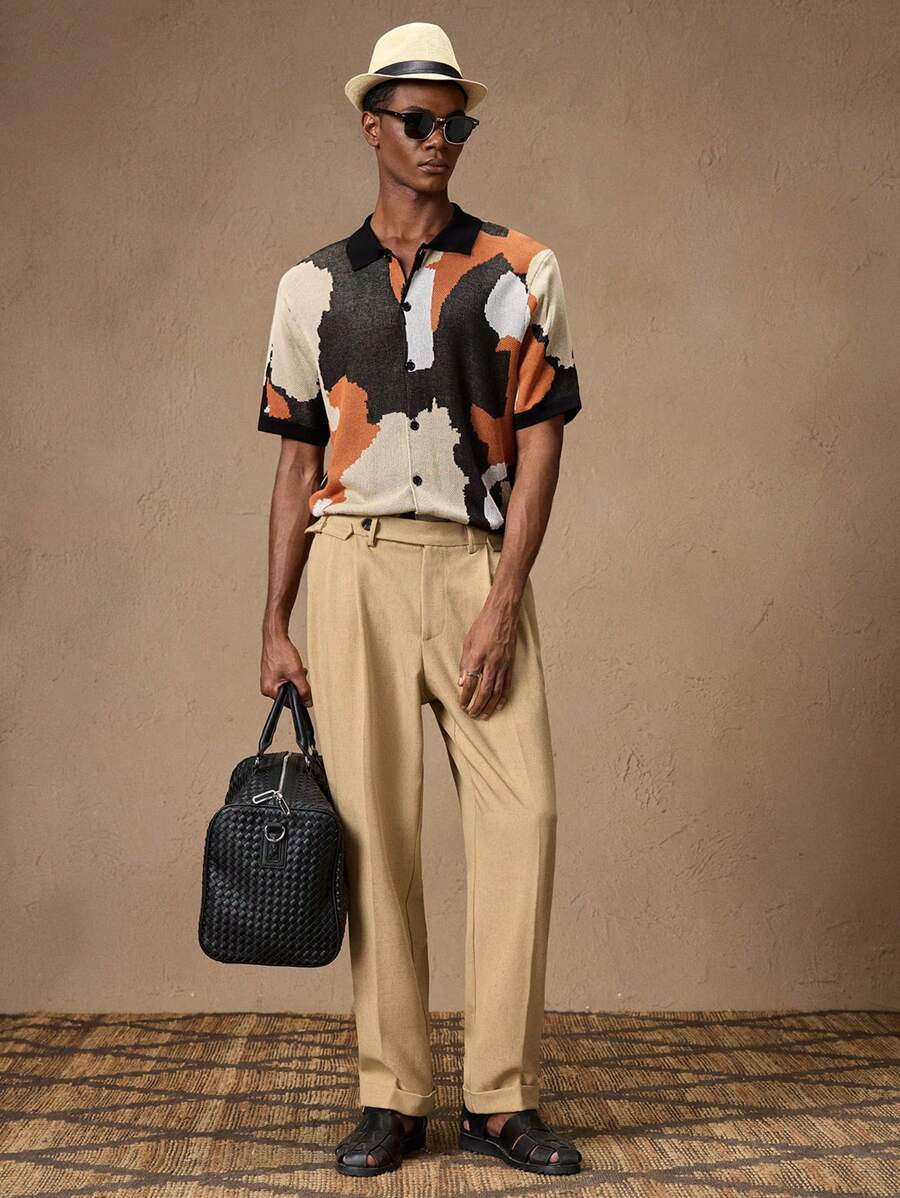 Men's Camouflage Knitted Short Sleeve Elastic Fitted Casual Polo Shirt