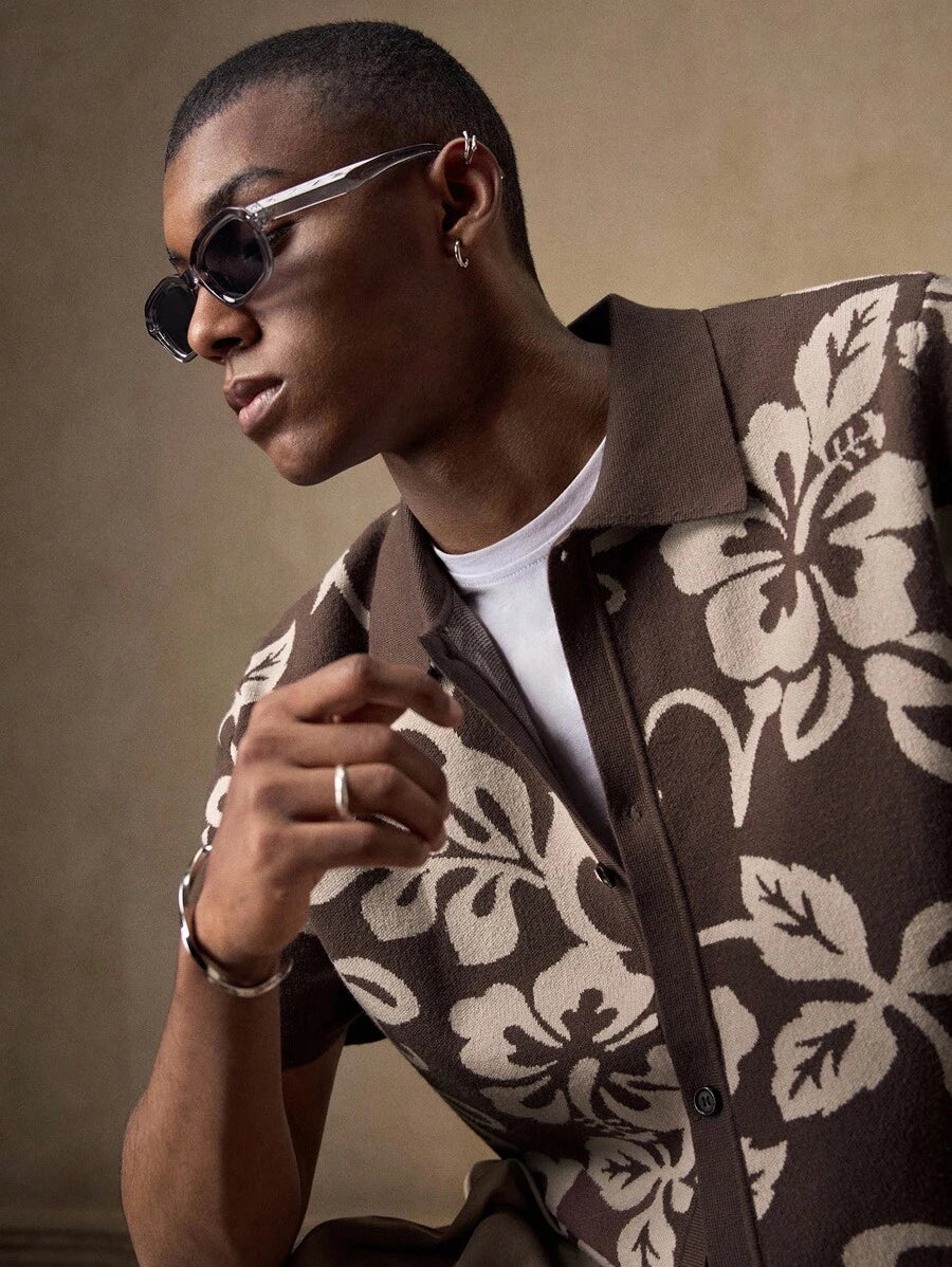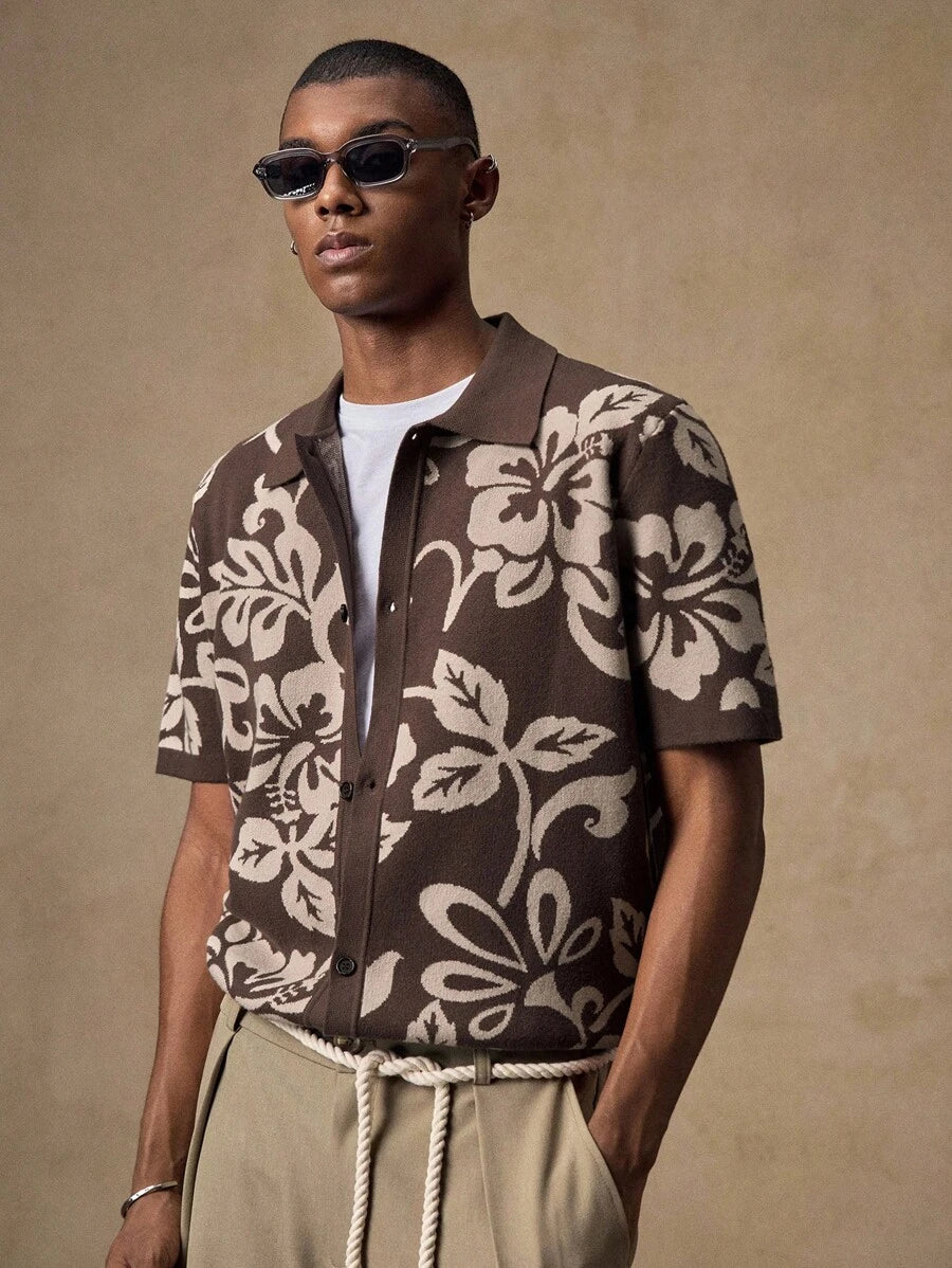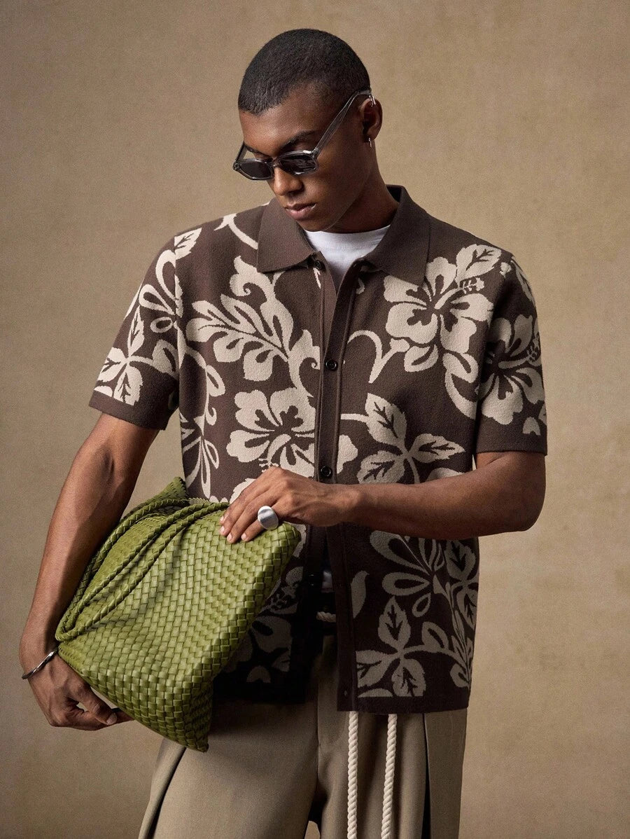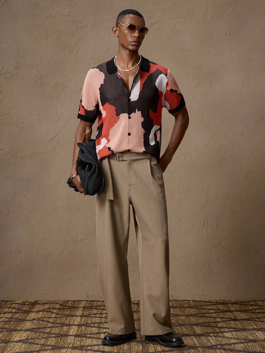 Men's Camouflage Knitted Short Sleeve Elastic Fitted Casual Polo Shirt