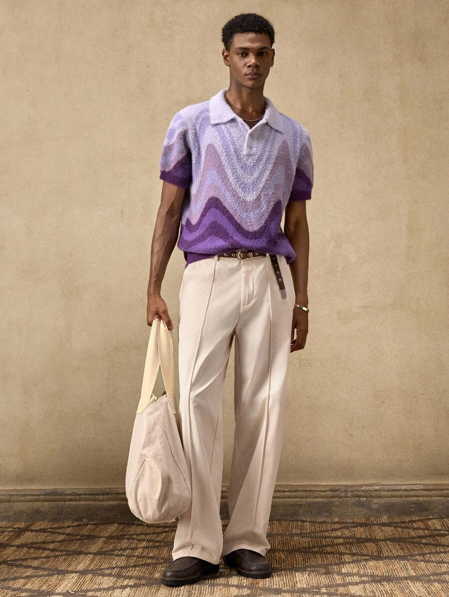 Men's Casual Loose Knit Short Sleeve Oversized Drop Shoulder Polo Sweater