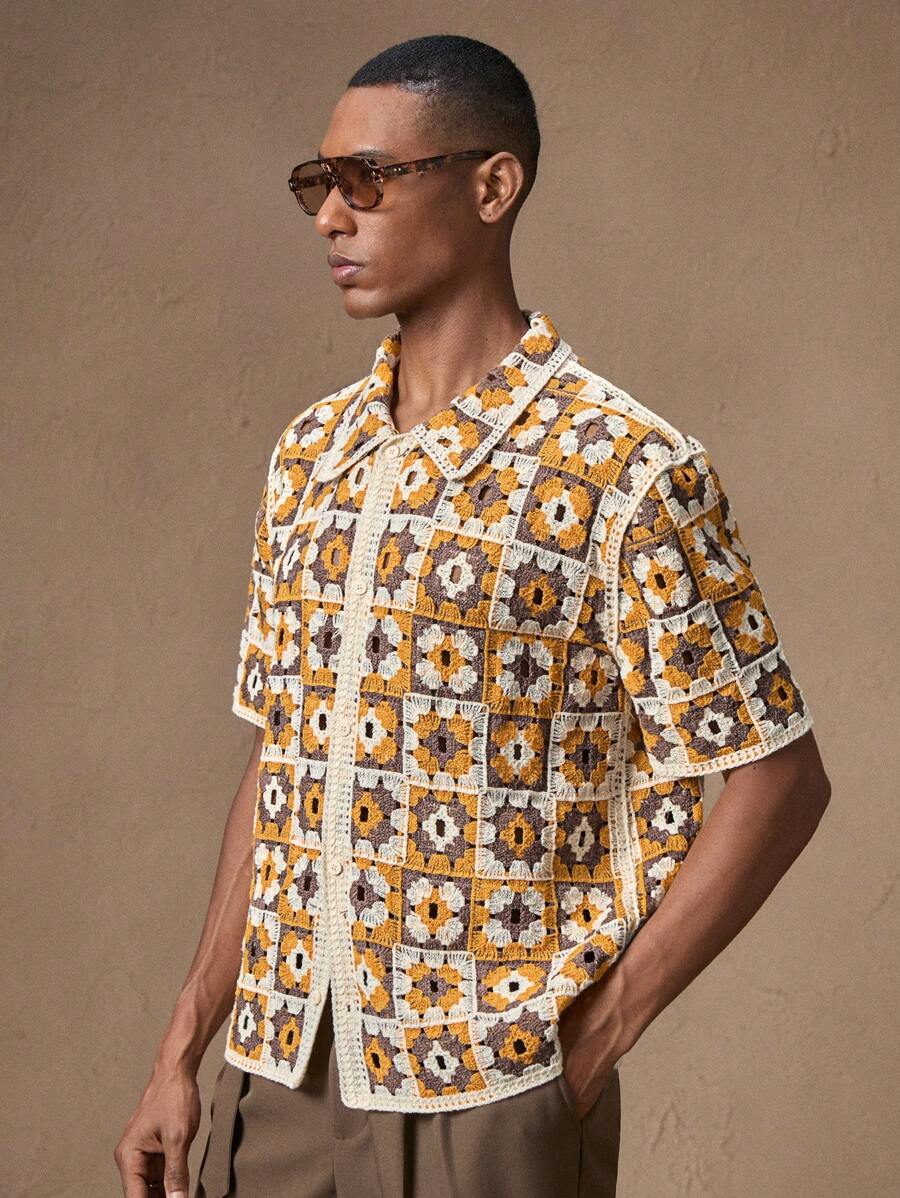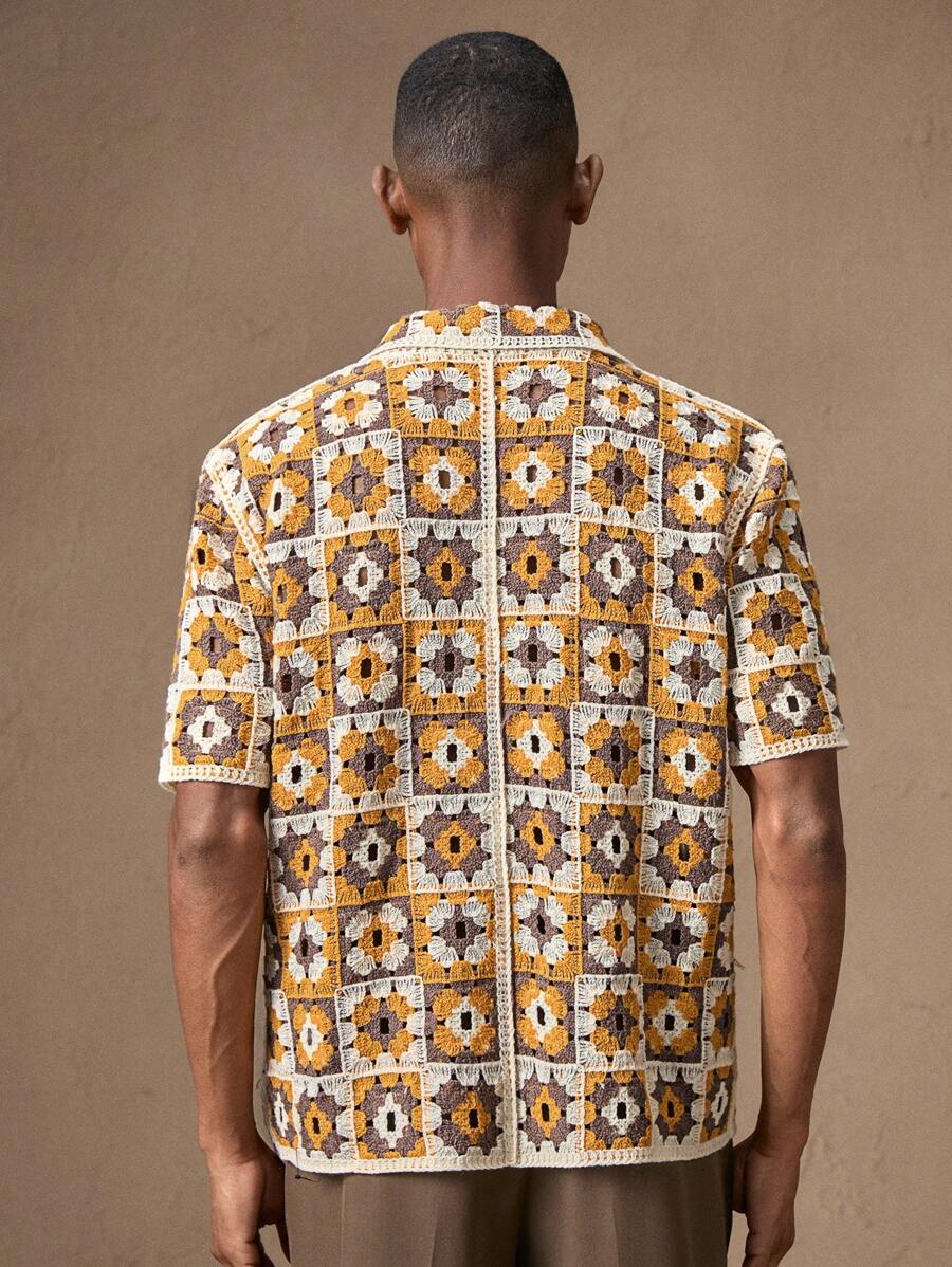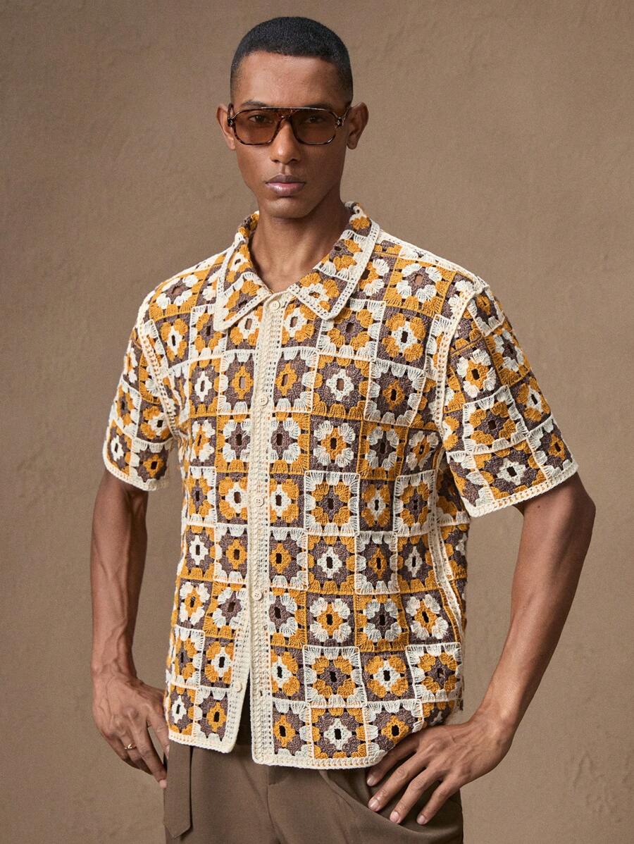 Business Casual Men's Crochet Knit Slim Fit Short Sleeve Cardigan Fall Sweater