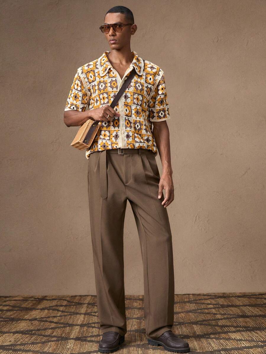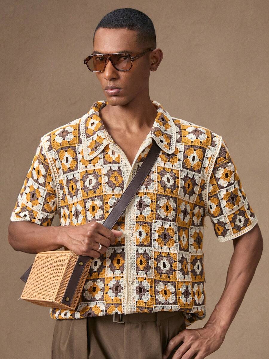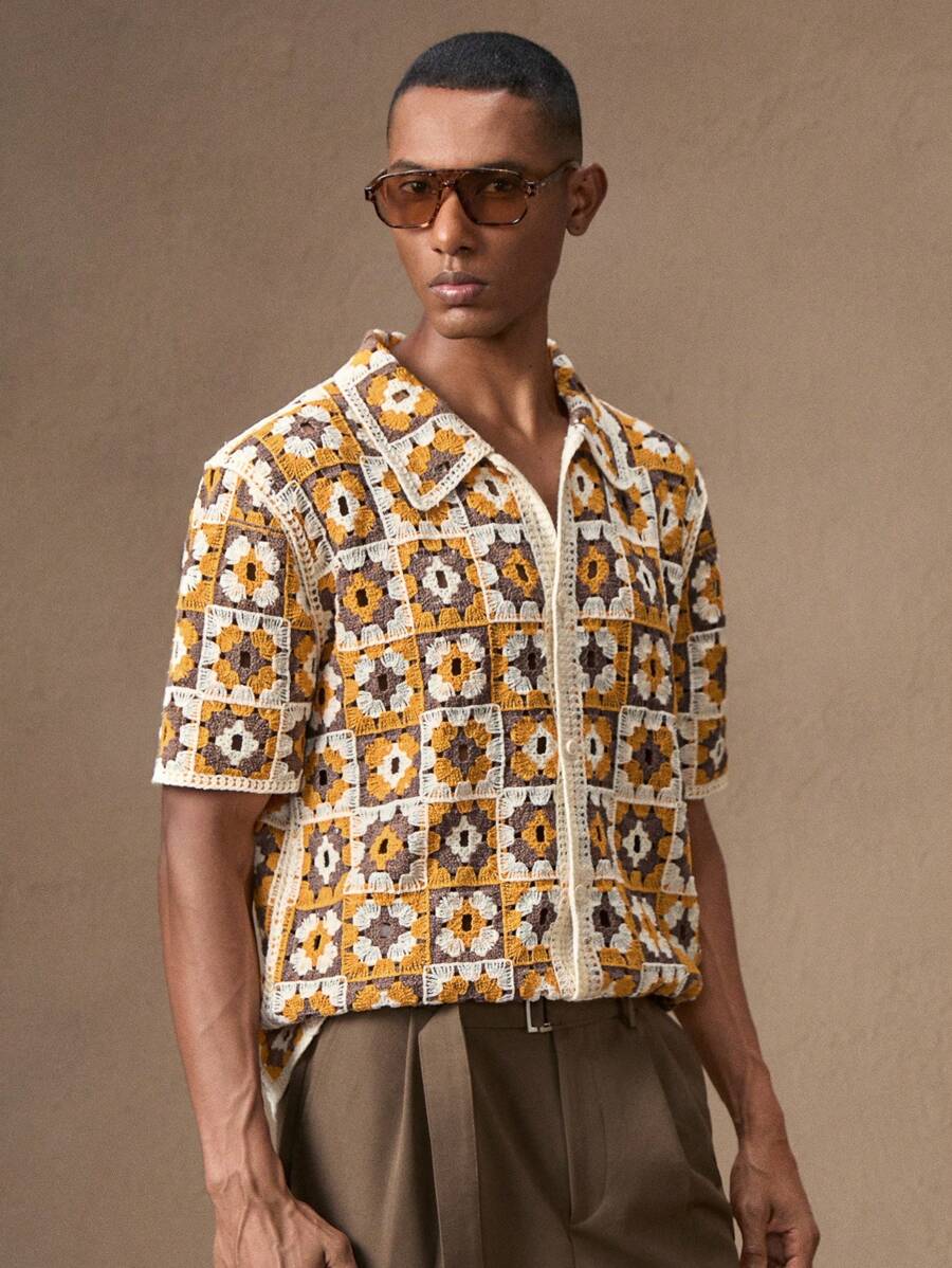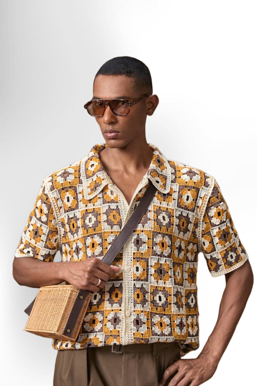Business Casual Men's Crochet Knit Slim Fit Short Sleeve Cardigan Fall Sweater