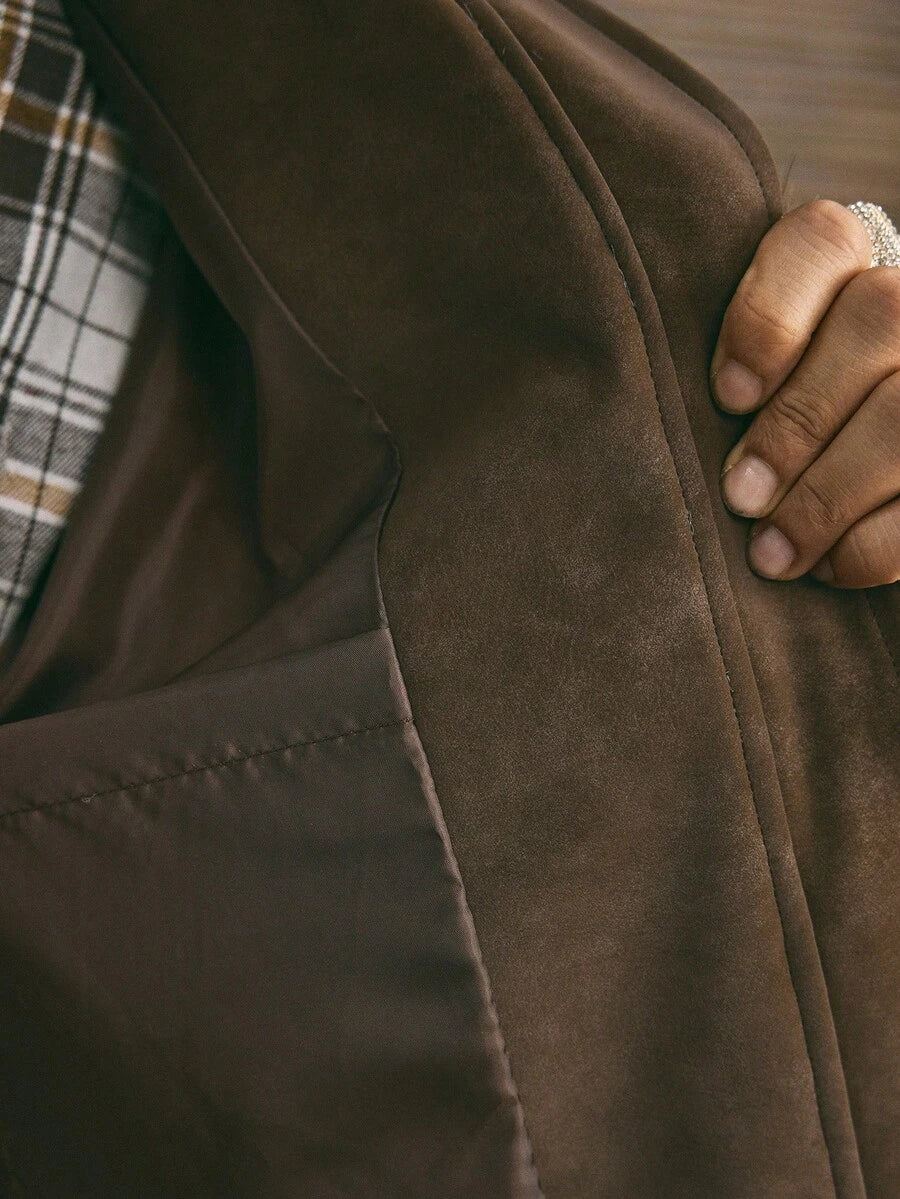 Men's Casual Zip-Up Round Neck Faux Fur Jacket