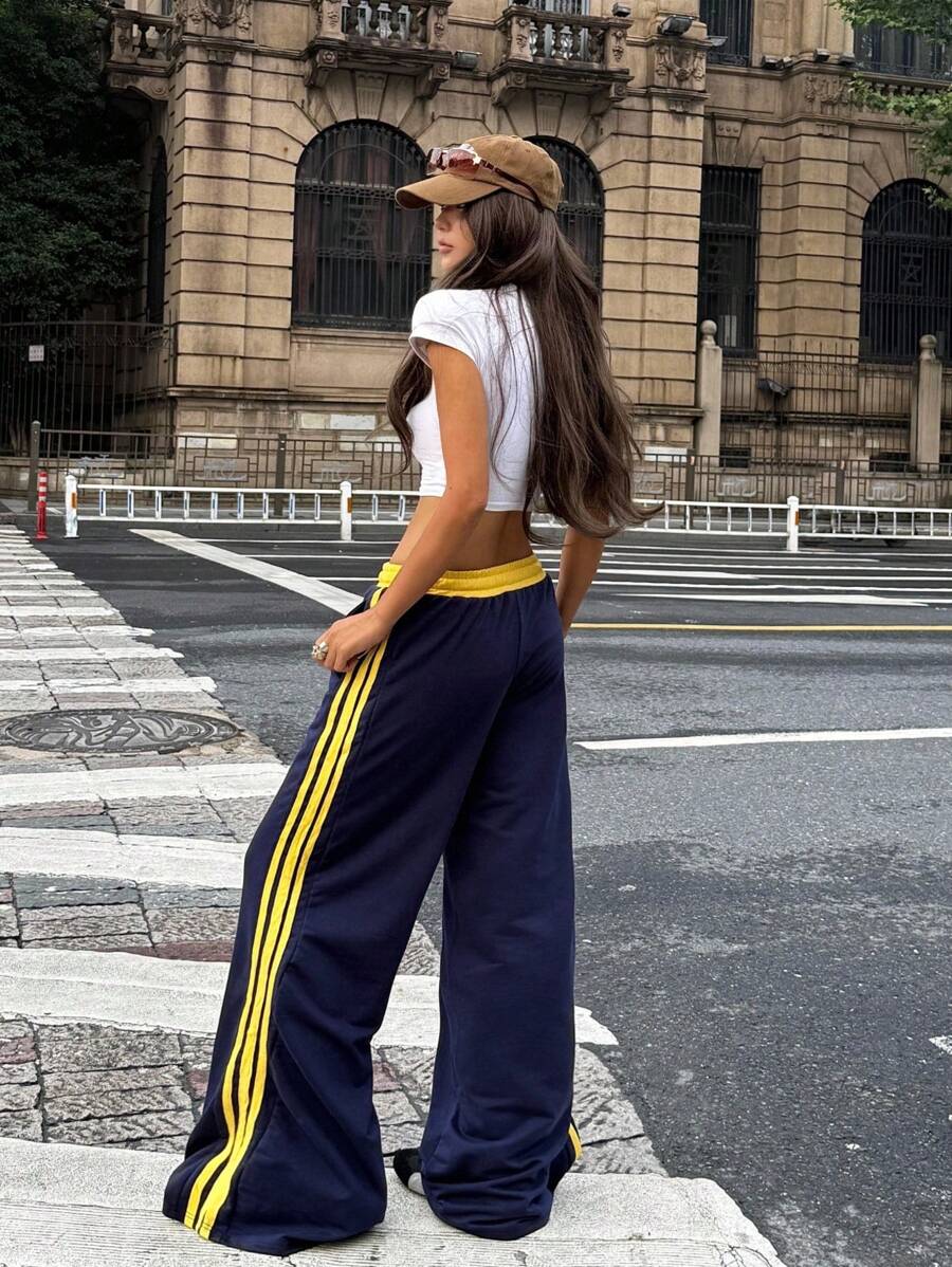 Unisex Contrasting Color Wide-Leg Sweatpants