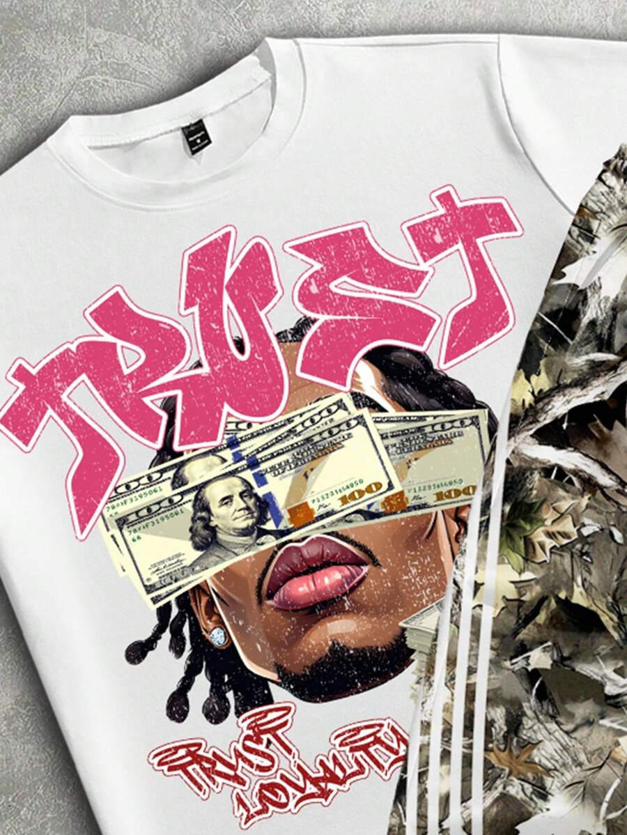 Camo Portrait Print T-Shirt Pants Set