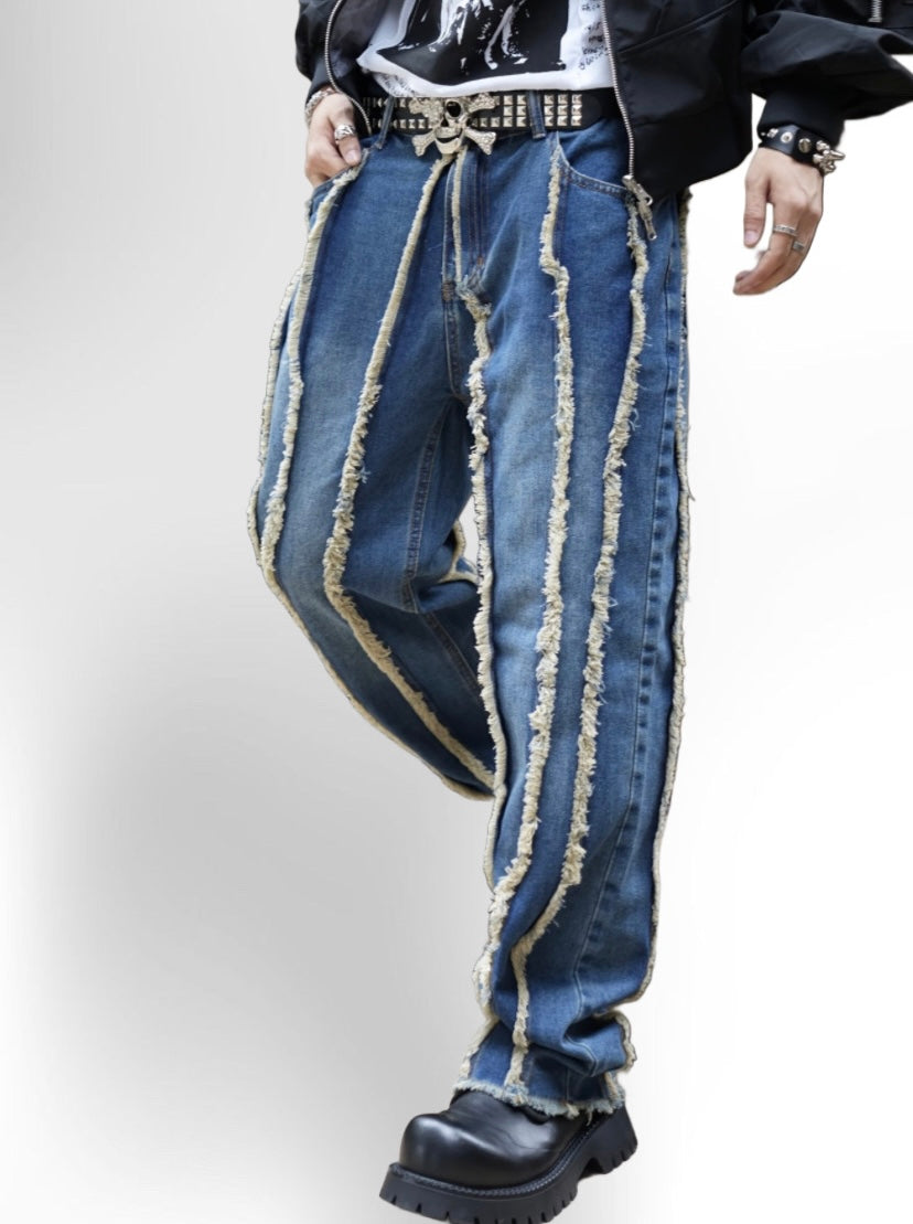 Men's Street Style Raw Hem Loose-Fit Jeans