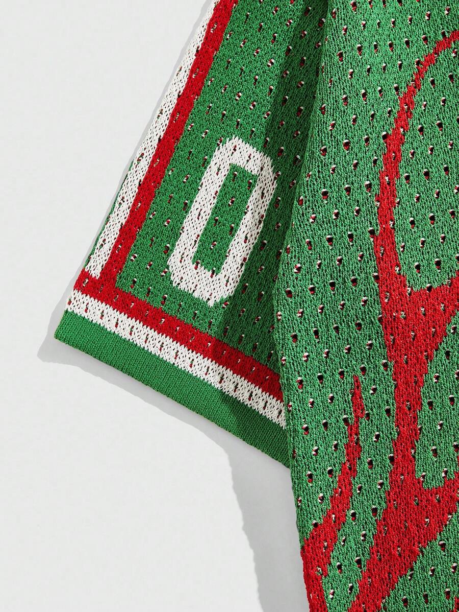 Men's Loose Fit Contrast Color Short Sleeve Knit Top Jersey