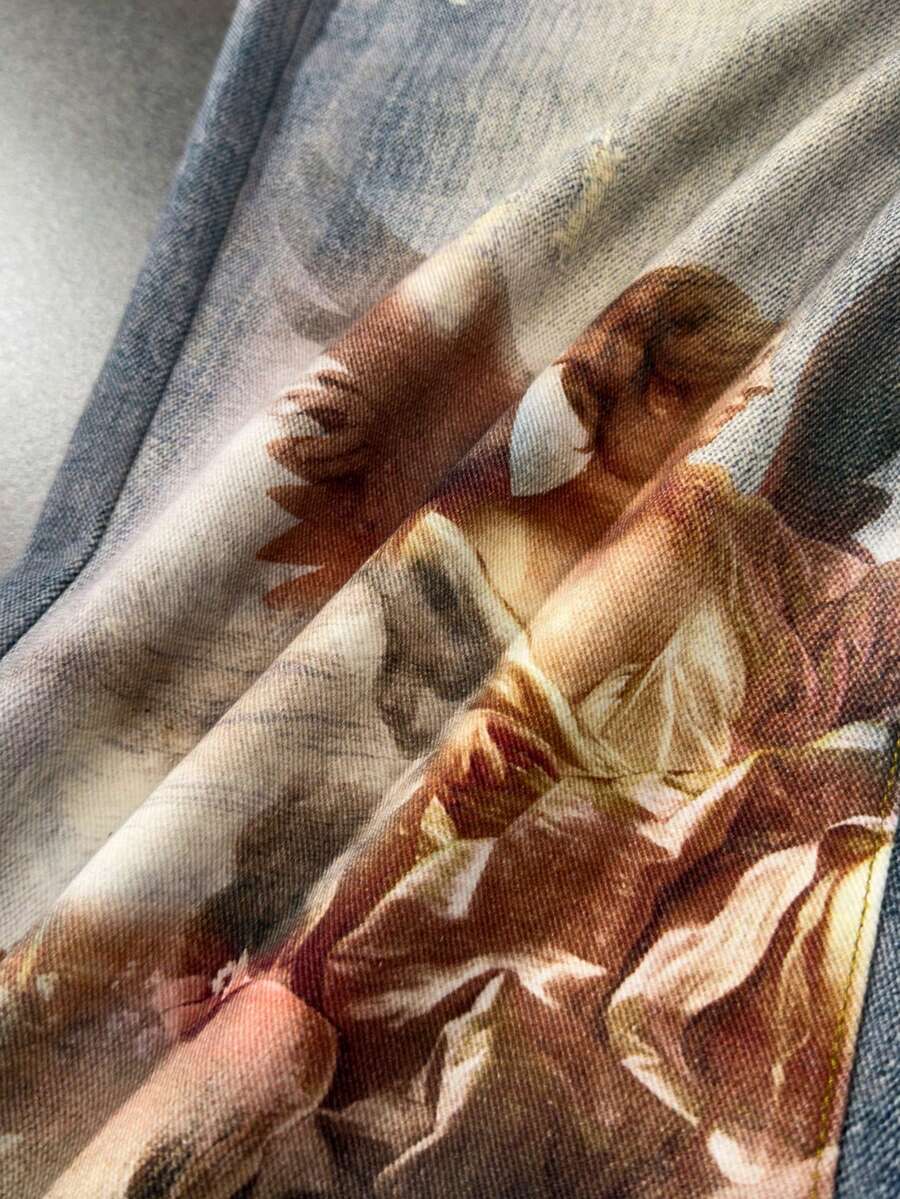 Angel Graphic Distressed Pocket Jeans