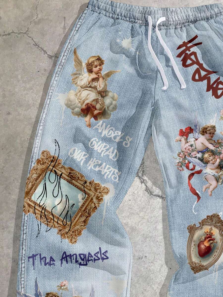 Angel Flame Print Straight Leg Sweatpants