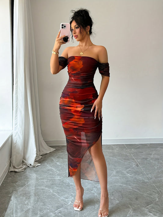 Floral Print Off-the-Shoulder Bodycon Dress for Women