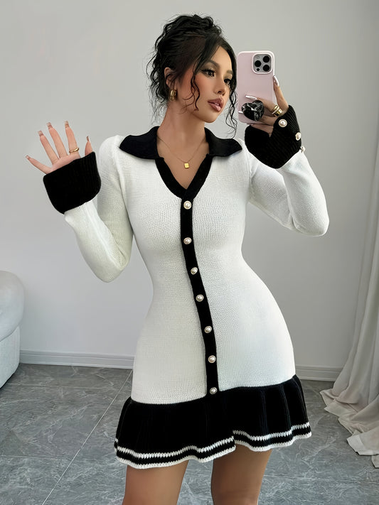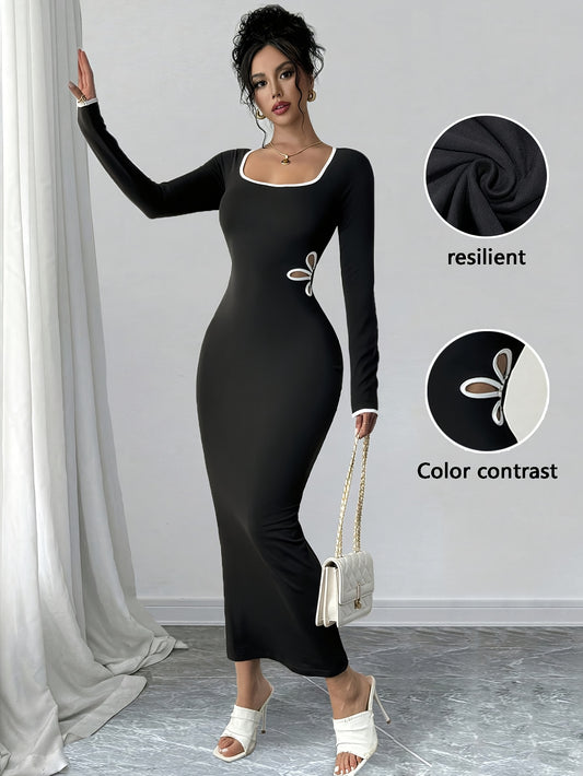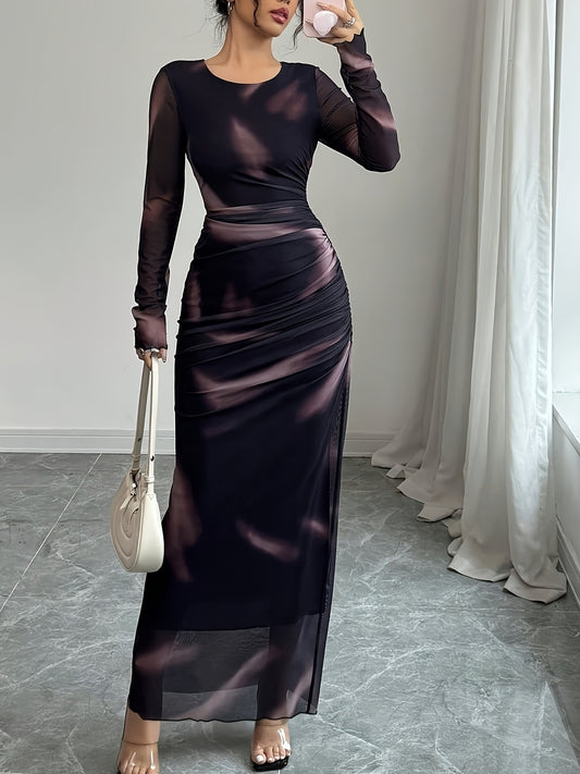 Elegant Women'S Long-Sleeve Dress with a Round Neck